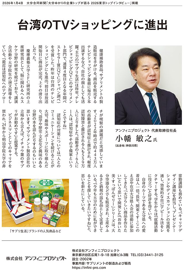 2026年1月4日発行の大分合同新聞にインタビュー記事が掲載されました。